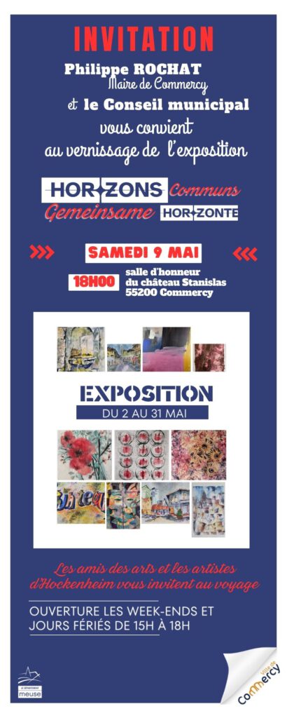Der Bürgermeister von Commercy, Philipp ROCHAT sowie der Gemeinderat von Commercy laden zur Vernissage der Ausstellung „horizons communs – Gemeinsame Horizonte„ am Samstag, 9. Mai 2026 um 18 Uhr nach Commercy ins Schloss Stanislas (Ehrensaal) ein.