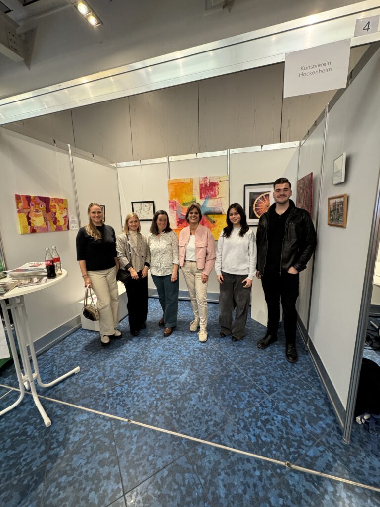 Der Kunstverein Hockenheim war am Freitag, dem 09.01.2026, mit einem Stand beim Neujahrsempfang der Stadt Hockenheim in der Stadthalle vertreten. Neben der Besichtigung von Werken seiner Mitglieder hatten die Besucher:innen die Möglichkeit, sich direkt mit einzelnen Vorstands- und Beiratsmitgliedern sowie den ausstellenden Künstler:innen auszutauschen.