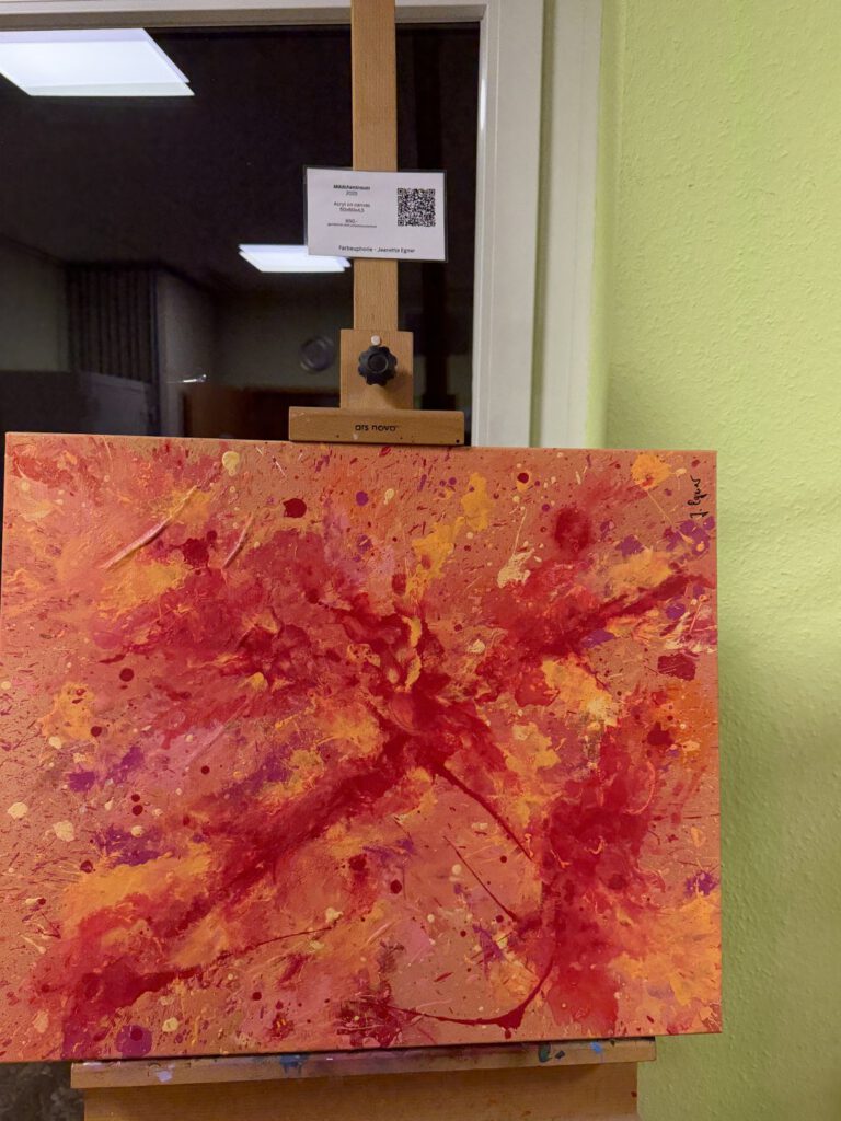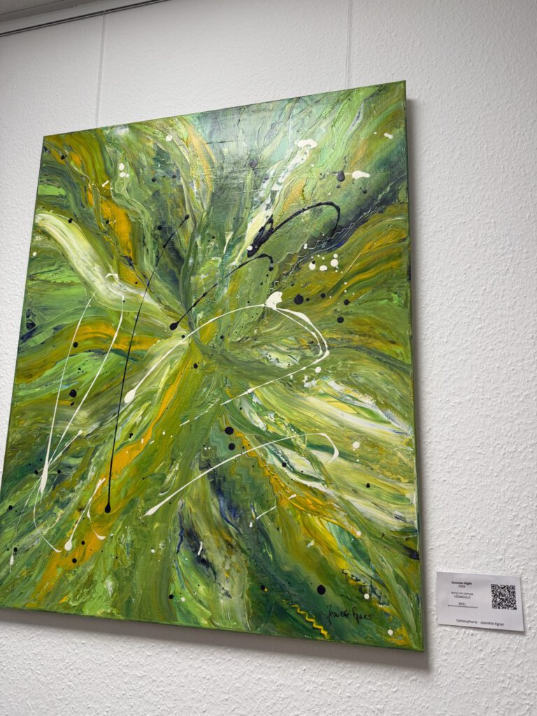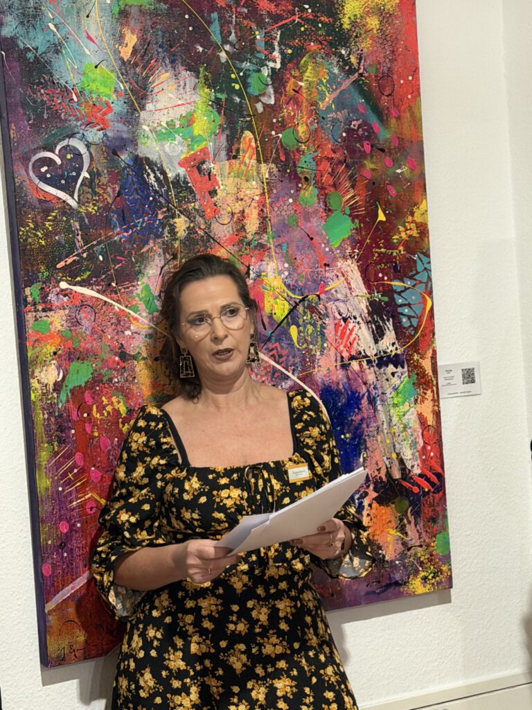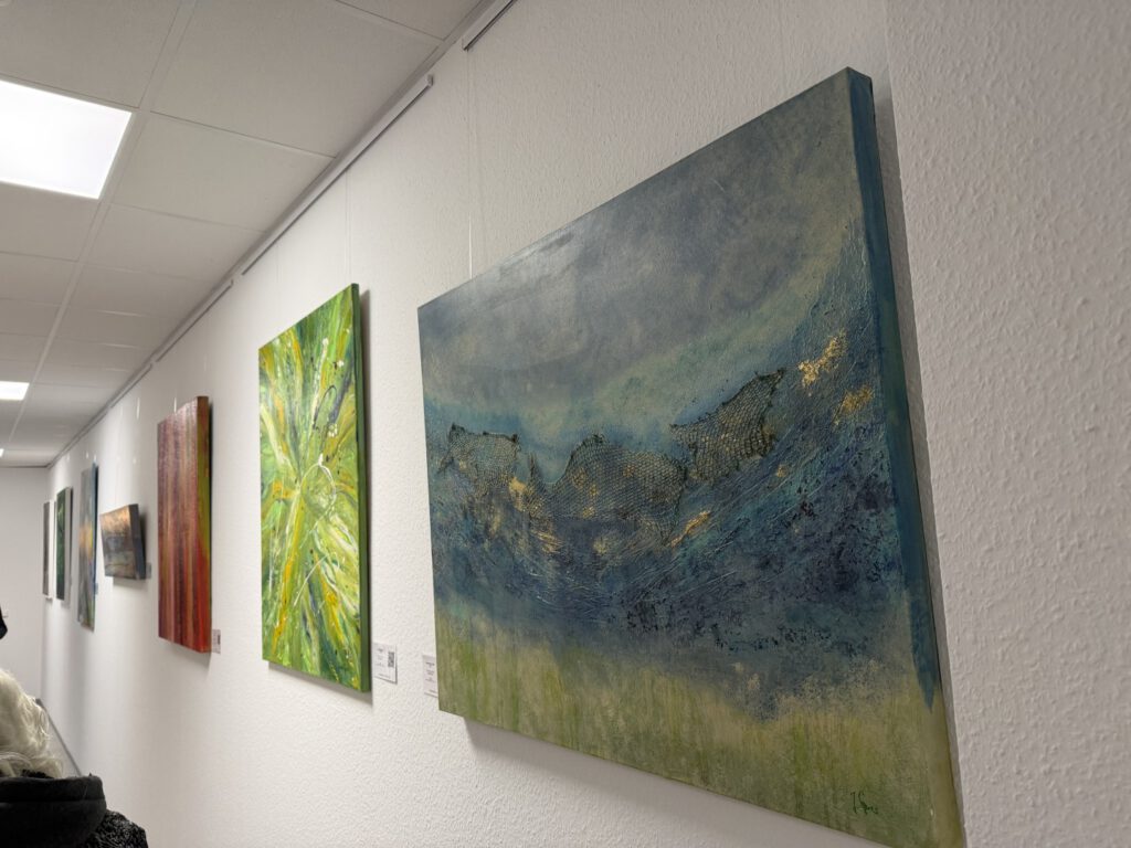 Insgesamt kamen über 130 Gäste, darunter Angehörige, Bewohner:innen, Gemeinderäte, Kirchenvertreter:innen, Vereinsvorsitzende und Vertreter:innen der lokalen Presse. Sie alle nutzten die Gelegenheit, die 30 Werke der Künstlerin in den Fluren, im Foyer und weiteren Räumen der Sozialstation zu bestaunen.