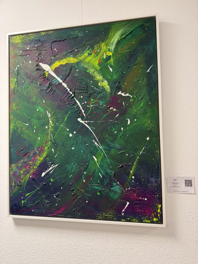Anschließend gab Jeanette Egner einen persönlichen Einblick in ihre künstlerische Arbeit. Sie sprach über ihre Bewegggründe zur Malerei, ihre Techniken, Impulse und Emotionen und darüber, was sie für sie ihre Kunst bedeutet.