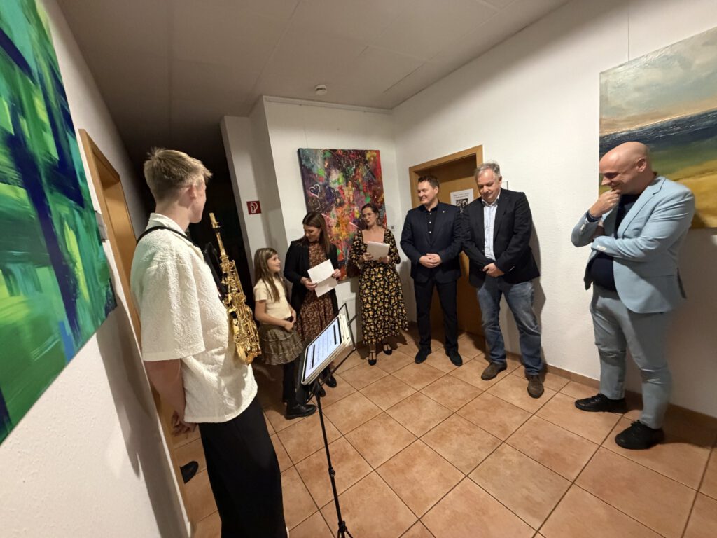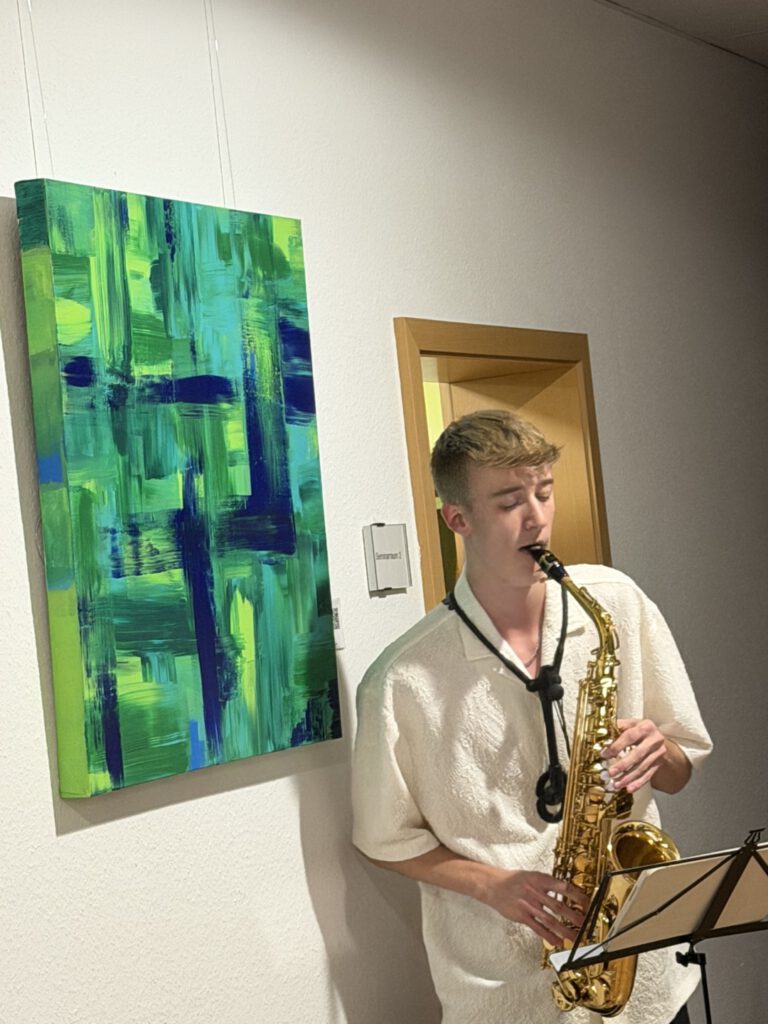 Für die stimmungsvolle musikalische Begleitung der Veranstaltung sorgte Maxumilian Roth mit seinem Saxofon. In den Grußworten von Jasmin Ulrich (Leiterin des Hospizdienstes) , Matthias Beck (Bürgermeister von Hockenheim), Daniel Born (Mitglied des Landtages von Baden-Württemberg) sowie Christian Kramberg (1. Vorsitzender des Kunstvereins Hockenheim) wurde die Bedeutung von Kunst, Kooperation und gemeinschaftlicher Zusammenhalt betont.